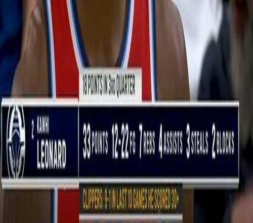 根据数据统计,在最近莱昂纳德单场突破30分的比赛中,快船的战绩是9胜2负(图片中的数据是转播方在比赛期间给出的,不算上本场比赛)。此役,莱昂纳德25投14中,得到37分8篮板4助攻。