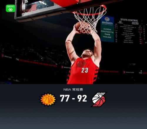 第四节,前半节太阳吉莱斯皮找到手感连续三分追至11分,开拓者格兰特、卡马拉得分止血,随着克林根连得5分领先16分,比赛逐渐失去悬念,最终太阳77-92不敌开拓者。