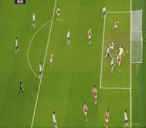 第32分钟,廷贝尔策动进攻,萨卡过掉萨尔后倒三角传中,埃泽停球并不舒服,但有足够的时间抽射破门。