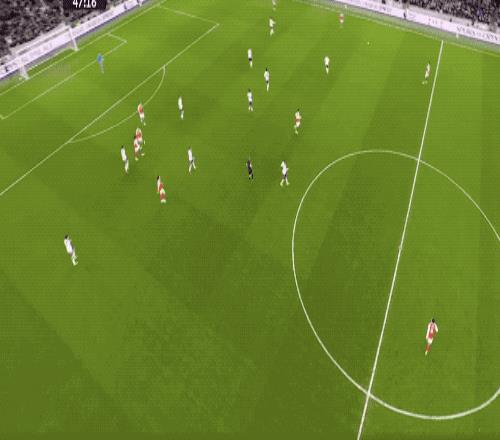 第61分钟,埃泽策动进攻,萨卡的单刀射门被挡出,埃泽补射梅开二度,两回合对阵热刺打进5球。